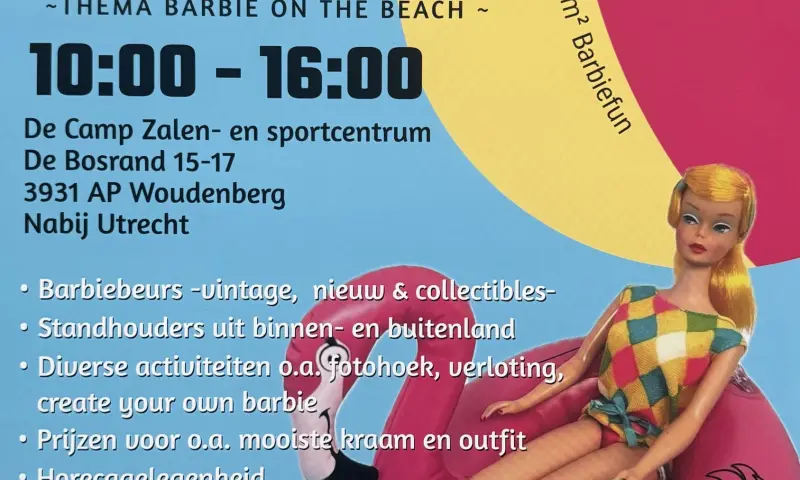 Het is feest in Sport- en Zalencentrum De Camp in Woudenberg. Op zondag 27 september 2026 kunnen alle Barbie liefhebbers en verzamelaars terecht bij dit geweldige evenement vol met Barbie poppen, Barbie gerelateerde producten en activiteiten. Het kan allemaal!