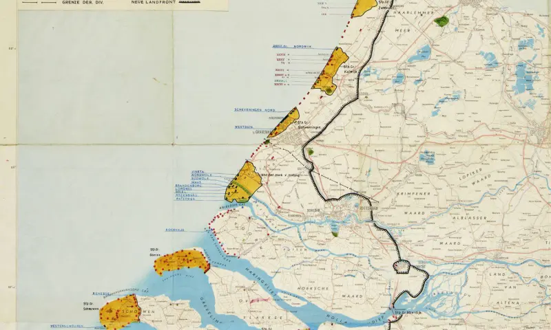 Ook werden vanaf 1944 grote stukken land onder water gezet. Tienduizenden mensen verloren hun thuis. De aanleg van de Atlantikwall is destijds in duizenden topografische en thematische kaarten vastgelegd. Er is slechts een fractie van bewaard gebleven, maar ook deze bieden een schat aan informatie. De exemplaren in deze pop-up expositie in combinatie met een audiogids vertellen in een notendop meer over de aanleg van de linie en de Duitse aanwezigheid langs de kust van Zuid-Holland.