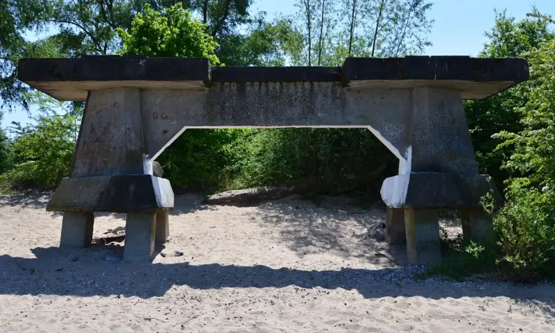 Hier staan elf oude betonnen pijlers van een NATO-brug uit de Koude Oorlog. Stichting Menno van Coehoorn streeft ernaar deze pijlers een beschermde status en een eigentijdse functie te geven. Locatie is gelegen in een natuurgebied de Sleeuwijkerwaard en is vrij te bezoeken.