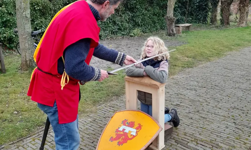Je kan middeleeuwse spelletjes spelen en er zijn zwaardvechtworkshops voor kinderen waarna ze een oorkonde ontvangen en geridderd worden!