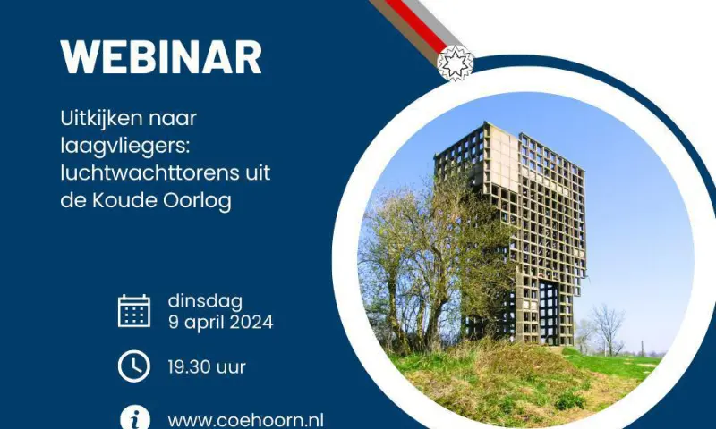 Uitnodiging webinar: "Uitkijken naar laagvliegers: luchtwachttorens uit de Koude Oorlog" op 9 april 2024 om 19.30 uur, gepresenteerd door Sandra van Lochem.