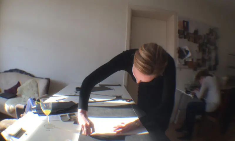 We maken geen patronen uit bladen na, maar we werken eigen schetsen, of meegebrachte foto’s uit in een echt kledingstuk.