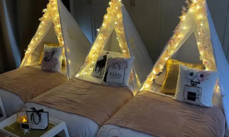 ✨ Glamour Thema: Voel je als een echte superster met onze luxe tipi's, compleet met glitter en glamour decoraties.