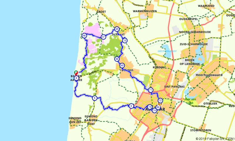 Natuur en cultuur gaan met deze tocht hand in hand. Je snuift volop historie op in Alkmaar en Bergen. De frisse lucht wordt geleverd door de prachtige bossen in de Schoorlse Duinen en door de westenwind aan de Noordzeekust.