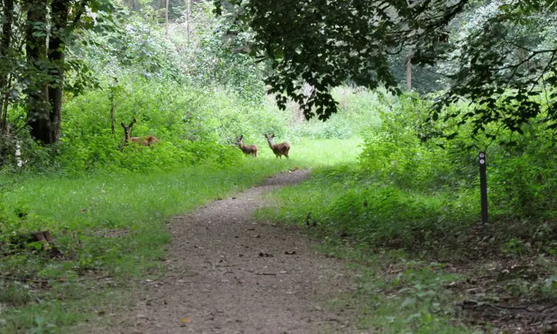 Net onder Almere rij je door een aantal bijzondere stadsbossen. Je komt onder meer door het Cirkelbos dat met strakke rechte lijnen is aangelegd. Je ziet er vooral hazelaar, beuk en els. Het Kathedralenbos dankt haar naam aan twee ‘kathedralen’: groene replica’s op ware grootte van de kathedraal van Reims. De één bestaat uit een grasvlakte in het bos, de ander geeft met Italiaanse populieren de pilaren van de kathedraal weer.