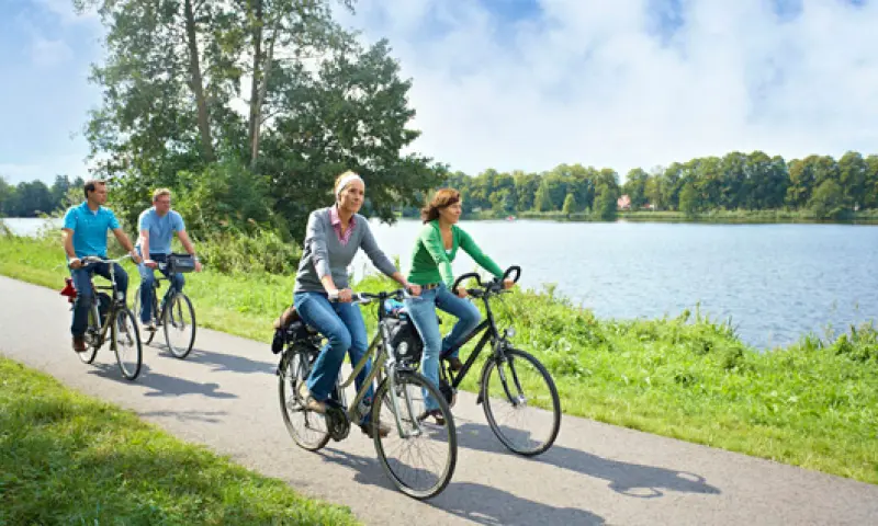Fiets langs de rand van Nationaal Park De Meinweg, een prachtig natuurgebied dat zich over de Nederlandse grens uitstrekt en ook Duitsland verrijkt met een uniek terrassenlandschap met steile overgangen. De terrassen zijn ontstaan door inschuringen van De Maas en verschuivingen in de aardkorst. Dwars door de terrassen stromen twee beken die het water van het bovenste plateau afvoeren. Idyllische bossen, uitgestrekte heide en romantische vennen en beekdalen voeren hier de boventoon. Het is dus een uiterst gevarieerd landschap waar je je ogen uit kunt kijken. Wat De Meinweg extra bijzonder maakt, is dat het de enige plek in Nederland is waar de adder nog voorkomt. De route start in Lövenich, bij de parkeerplaats voor Profile Zweirad-Schmiede “Der Fahrradspezialist”. Je kunt je fiets laten nakijken op mankementen en terwijl kleine reparaties worden uitgevoerd, kun je in Lövenich de Duitse oorlogsbegraafplaats Kriegsgräberstätte bezoeken. Hier rusten 441 Duitse soldaten die in de Tweede Wereldoorlog omkwamen. Bij het ophalen van je fiets krijg je 10 euro korting op je onderhoudsbeurt op vertoon van je fietsvoordeelpas. Dan zet je koers richting de stad Wassenberg, die de poort vormt naar Nationaal Park De Meinweg. Historische bouwwerken zijn goed bewaard gebleven. Zo omringen oude stadsmuren de stad, en leiden smalle straatjes met schitterende panden naar andere imposante gebouwen, zoals een prachtige burcht. Er is genoeg te beleven in Wassenberg en prachtige tuinen en parken vormen het bewijs dat Wassenberg lid is van het European Garden Heritage Network. In de zomer worden er veel leuke evenementen georganiseerd en in de winter zijn de kraampjes van advent- en kerstmarkten heel gezellig om langs te slenteren.