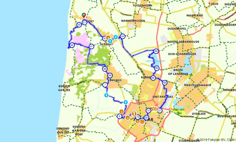 Verken de gezellige hofjes van Alkmaar, fiets langs de oude grachten en ontdek de nauwe straatjes. Verken de omgeving en geniet van het schitterend uitzicht over de Noordzee, dat de Schoorlse Duinen je biedt wanneer je je weg hebt gezocht door Boswachterij Schoorl. Heerlijk uitwaaien op de fiets in de hoge duinen en in de eeuwenoude bossen van Schoorl. Je start bij Restaurant De Bokkesprong bij Hans en Stacey in Groet, een boerderij op een steenworp afstand van het strand. Geniet hier van een lekkere lunch of een kop koffie voordat je op de fiets stapt en de rest van de omgeving verkent. Onderweg kom je prachtige molens tegen – Hollandser krijg je het niet – waaronder vier strijkmolens die bij elkaar staan in Alkmaar. Een prachtig zicht!