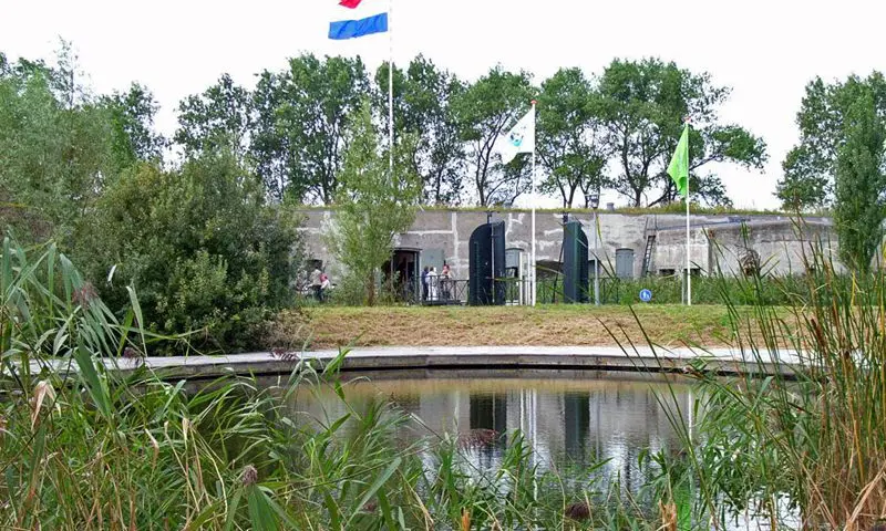 Na al die historische staaltjes van Nederlandse krijgskunst fiets je weer terug langs recreatiegebied Veerplas. In de koude helft van het jaar overwinteren aan de drassige oevers talloze watervogels zoals de grauwe gans, de smient en de brilduiker. En voor wie heel even de benen wil strekken en met de tenen in het koele water wil: aan de westzijde van het meer vind je een recreatiestrand.