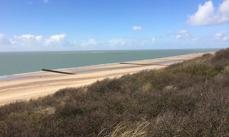 Als eerste fiets je naar Dishoek. Net achter de duinen rij je vervolgens door een mozaïek van loofbosjes, weilanden en duinstruweel. Verderop ligt Zoutelande, een populaire badplaats. Hier passeer je de Zoutelandse Molen, een korenmolen uit 1862. Ook kun je een blik werpen op de Catharinakerk. De oudste delen van de toren stammen nog uit de dertiende eeuw. Het grootste deel van de huidige kerk dateert uit 1738.