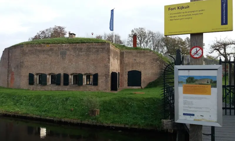 De kazemat heeft een stalen schild van 20 centimeter dik en is afkomstig van het in 1927 gesloopte pantserschip Hare Majesteit Tromp. Helaas verhinderde het de invasie van 1940 niet, de Duitsers vlogen er gewoon overheen. Zij wisten precies waar het fort zich bevond, ook al stond het tot begin jaren zestig op geen enkele topografische kaart. Wat kun je doen bij Fort Kijkuit?. In de kazerne van Fort Kijkuit is het beheerkantoor van de Vechtplassen gevestigd. Als er boswachters aanwezig zijn, is het fortterrein toegankelijk voor het publiek. Meestal is dit van maandag t/m donderdag van 8.30 tot 17.00 uur. In het weekend is het fort gesloten. Bezoek het informatiepunt in het voormalige kruithuis en kom meer te weten over de geschiedenis van het fort, de bijzondere natuur in de omgeving en over fiets-, wandel-, en vaarroutes. Vanaf het uitzichtpunt heb je een weids uitzicht over de Horstermeerpolder, natuurgebied de Wijde Blik en molen Gabriël. In de fortgracht zie je met een beetje geluk vogels als kuifeend, fuut en de ijsvogel. Verspreid op het terrein staan picknicktafels. Er is een aanlegplek voor bootjes.