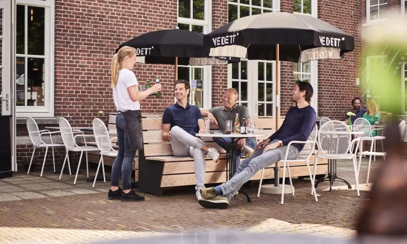 Verzamelen bij het poortgebouw (tijdelijke locatie van het museum).
