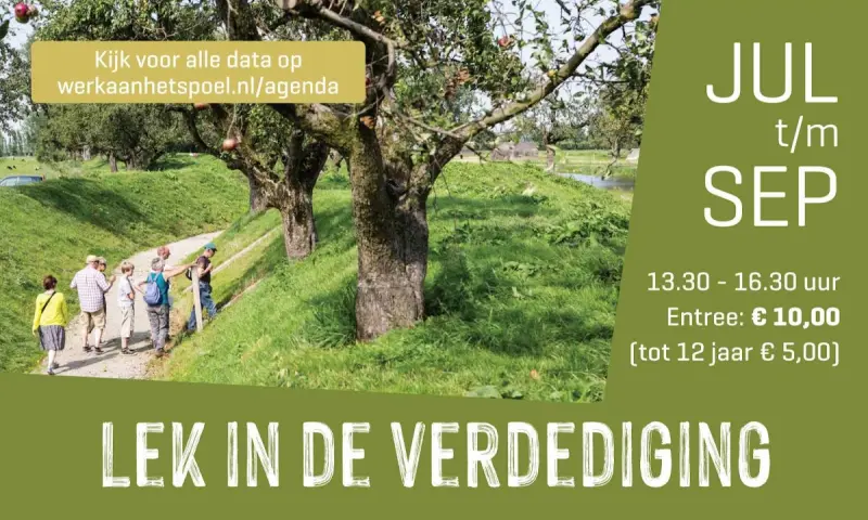‘Lek in de verdediging’ is een spannende belevenis langs schuilplaatsen en door loopgraven. Een excursie vanaf Werk aan het Spoel, met het Liniepontje over de Lek naar Werk aan de Groeneweg. Lopend én varend door het Linielandschap met aandacht voor de uiterwaarden, de rivier de Lek en de zichtbare restanten van de Waterlinie en verhalen van de geschiedenis van dit gebied.