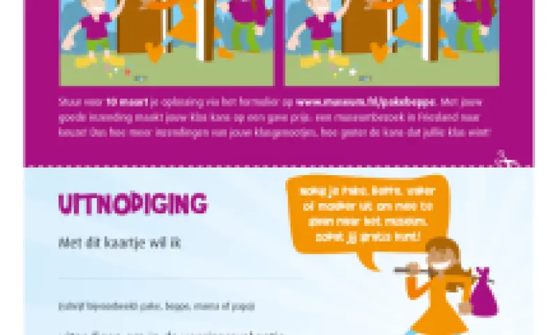 Help Pake & Beppe De Vakantie Door 2026 is van 24 februari t/m 27 februari. Musea in heel Friesland openen dan hun deuren speciaal voor kinderen. Er worden allerlei leuke activiteiten georganiseerd. En kinderen hebben gratis entree ‘op vertoon’ van een volwassene. Dus niet alleen je pake en beppe mogen mee, ook je ouders, oom of tante! Ook voor hen hebben de musea van alles leuks in petto.