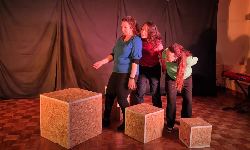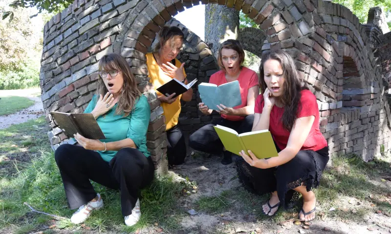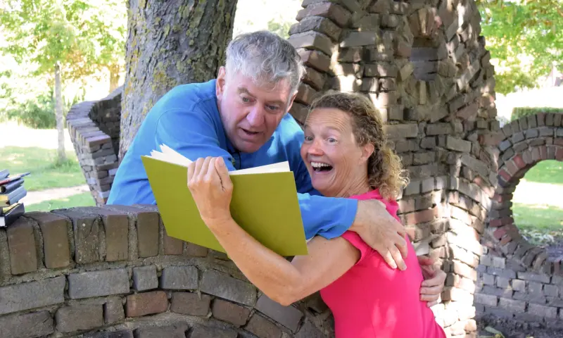 Op het toneel staan grote boeken. Aan de kant staan de spelers al klaar. Welk boek kiezen jullie uit om een verhaal mee te maken?