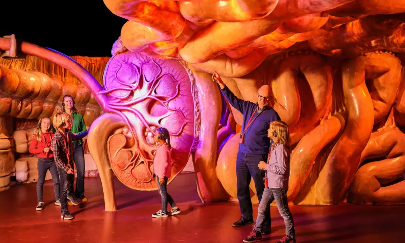 Maak in het 5D-harttheater een duizelingwekkende ‘reis’ als rood bloedlichaampje, adem mee in de longen, spring op de tong, loop door het oor, verwonder je in de hersenen en verbaas je over je eigen fantastische lichaam. Begeleid door een audiotour – beschikbaar in 8 talen – beleef je in groepen van maximaal 16 personen de ‘reis door de mens’. Na de ‘reis’ leer je nog meer over je eigen lichaam en het belang van Veel bewegen, Verantwoord eten en Gezond leven in ‘mijn CORPUS’ het interactieve gedeelte. Hier vind je bijzondere exhibits en games met een schat aan extra informatie over het menselijk lichaam. Je kunt daar ook een leuke & leerzame speurtocht doen. Een gemiddeld bezoek aan CORPUS duurt 2,5 uur. CORPUS is geschikt voor alle generaties!