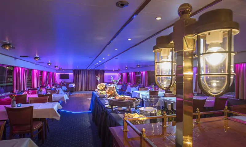 Tijdens deze cruise presenteert de bemanning een uitgebreid diner dat elke maand in het teken staat van een ander thema. U wordt ontvangen met een feestelijk aperitief. De bemanning serveert een voorgerecht aan tafel. Voor het hoofdgerecht wordt u uitgenodigd aan het buffet en is er een keuze uit diverse gerechten. Als afsluiting wordt een dessert geserveerd.