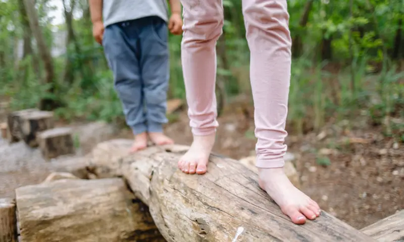 Naast Speelbos Zandspoor ligt een bijzonder pad: het blotenvoetenpad. Hier ervaar je alle elementen van de Schoorlse Duinen tussen je tenen en onder je voeten. Zo loop je tijdens dit rondje van ongeveer 250 meter door bakken met schelpen, dennenappels, zand, boomschors en nog meer verassingen. Onderweg wordt jouw evenwicht op de proef gesteld door het balanceren op houten balken. Leuk voor iedereen, dus schoenen uit en gaan!
