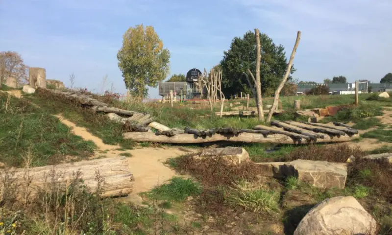 Sinds 2018 is hier een blotevoetenpad met waterspeelplek gerealiseerd. Pomp zelf het water op met een van beide pompen en volg het pad van ongeveer 60 meter lang. Voel water, zand, gras, steen en hout onder je voeten. Klim en klauter tot aan de vijver en neem plaats op de troon. Ook kinderen in een rolstoel kunnen water pompen en een spannende brug oversteken! Leuk voor jong en oud.