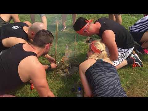 Na een korte instructie moet elk team met natuurlijke materialen en primitieve technieken vuur maken. Met dit vuur moet een touw doorgebrand worden. Het team die dit als eerste bereikt wint.