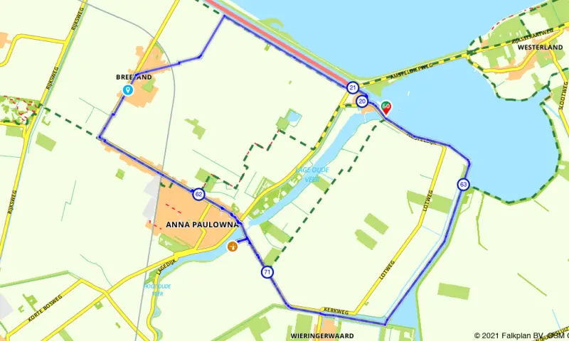 De polder is vernoemd naar de Russische vrouw van Koning Willem II. Het is de laatste polder die in deze regio werd drooggemaakt: pas in 1846. De verzilte grond bleek echter lange tijd ongeschikt voor de landbouw. Nu zie je er in het seizoen kleurige bollenvelden. Je loopt een stuk langs de oever van het Amstelmeer. Oorspronkelijk vormde dit meer een overgang tussen de Waddenzee en de voormalige Zuiderzee. Je ziet hier veel vogels en watersporters.