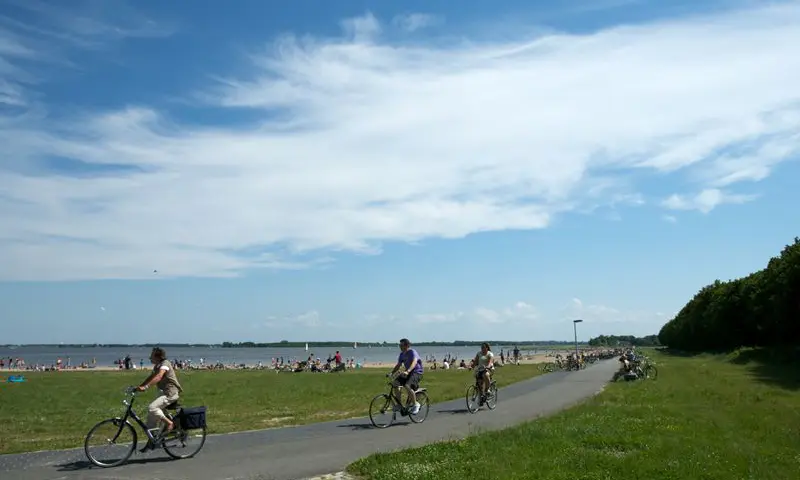 Aan de oostzijde van Blauwestad loop je door het Reiderwolde. Dit nieuwe natuurgebied bestaat uit een mozaïek van bossen, graslanden, fruitbomen, moerassen en poelen. In het zuidelijke deel staat op één van de heuvels een steenrode uitkijktoren van zo’n zeven meter. Vanuit de top heb je een prachtig uitzicht over het Oldambtmeer en enkele plaatsjes in de omgeving, zoals Finsterwolde.