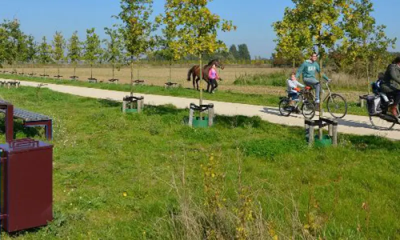 Je start de route in De Park, het deelgebied dat is vernoemd naar het voormalige kasteel De Parck. De Notenlaan vormde ooit de oprijlaan van dit kasteel. Dit deelgebied lijkt heel erg op een stadspark. Je wandelt door een mozaïek van lanen, stukken bos en open gedeelten. Dit landschap wordt doorsneden door het markante Romeinse Lint, een brede zone die is aangelegd met watergang en kastanjebomen.