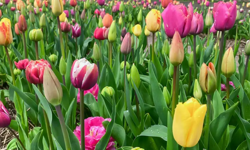 Het plukken van tulpen in onze pluktuin kan zolang de tulpen groeien en bloeien. Dit is wel