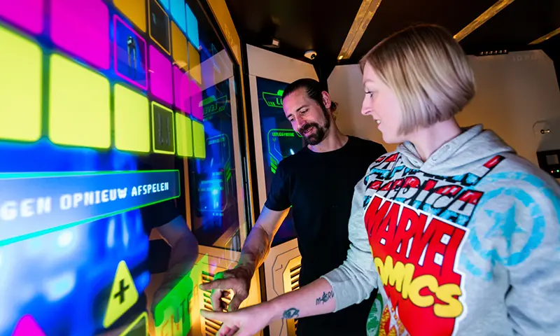 De X-Cube biedt interactieve ervaringen voor kleine groepen van 2 tot 6 personen, vol met verschillende (escape) belevenissen. Uitgerust met een groot touchscreen, meerdere schermen, controllers, sensoren, verlichting en een hoogwaardig geluidssysteem, biedt de X-Cube een meeslepende ervaring met diverse thema's. We hebben X-Cubes verspreid over heel Nederland.