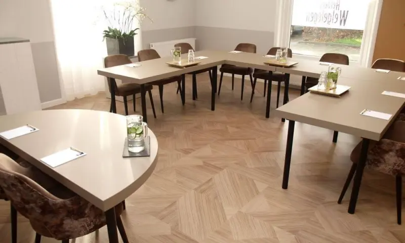 De vergaderruimte is warm en zakelijk ingericht. Audiovisuele ondersteuning is aanwezig in de vorm van een smart tv. Er is de mogelijkheid voor lunch en huisgemaakte ochtend- en/of middagsnack.