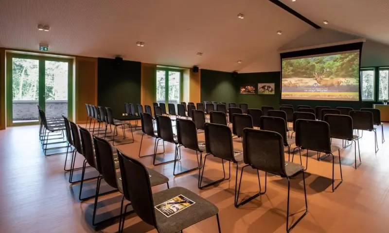 Voor zakelijke bijeenkomsten kun je terecht in het Park Paviljoen: een moderne, duurzaam gebouwde locatie met verschillende vergader- en eventruimtes. In deze moderne locatie sta je letterlijk in verbinding met de natuur. De flexibele vergaderzalen kijken uit over de bossen van De Hoge Veluwe. Grote kans dat er tijdens je bijeenkomst zomaar een hert langs het raam wandelt. Alle ruimtes zijn licht, comfortabel en van alle gemakken voorzien. En voor wie dat wil: subtiele vogelgeluiden in als natuurlijke achtergrond.
