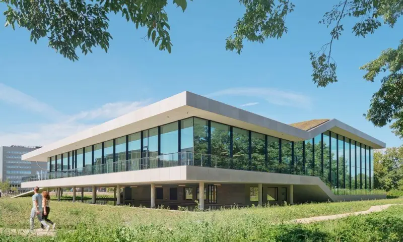 Het gebouw staat aan de rand van de Wageningen Campus, in het hart van FoodValley. Door het open en transparante karakter geeft het een ruimtelijk gevoel en je hebt overal prachtig uitzicht over de omgeving.