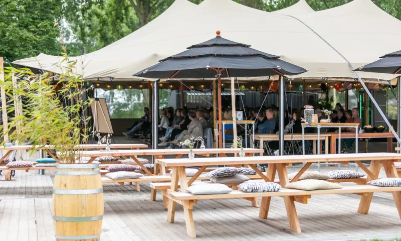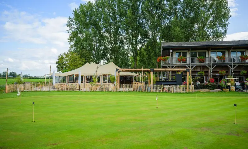 Voor grote groepen is de Fairway perfect. De Fairway is een sfeervolle stretchtent op het voorterrein aan de waterkant en een prachtig terras met uitzicht op de golfbaan. Deze is van alle gemakken voorzien zoals meubilair, professionele muziek-en geluidsinstallatie.