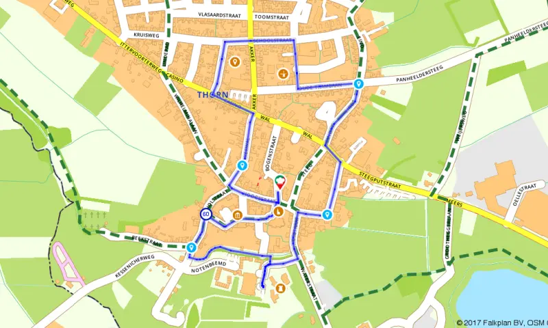 De geschiedenis van Thorn gaat terug tot de 10e eeuw. Enkele eeuwen later had het stadje zich ontwikkeld tot een klein vorstendom met een eigen munteenheid en rechtspraak. In 1794 namen de Fransen de macht over in Thorn en zij hieven belasting op basis van de grootte van de ramen van een huis. Een groot deel van de bevolking kon de belasting voor hun grote huizen niet betalen en daarom metselden ze veel ramen dicht. Om de sporen daarvan te camoufleren schilderden ze hun huizen wit. Zo ontstonden de iconische witte huisjes in Thorn. Tijdens deze wandeling zie je veel van deze huisjes en verder kom je langs het Gemeentemuseum Het Land van Thorn, Kasteel Groenenberg, de Sint-Michaëlskerk en de molenromp Zeldenrust.