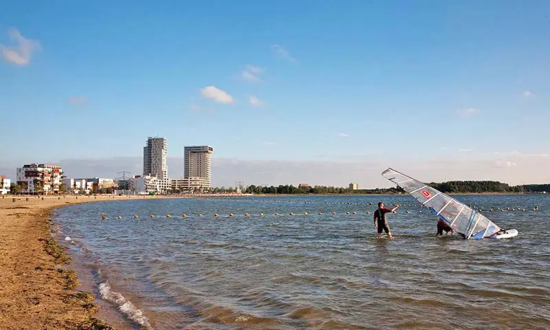 Je startpunt van vandaag ligt op een heel bevoorrecht plekje. Het eiland Lake7 / Beachclub7 vind je aan de Zevenhuizerplas, met een privé strand met ligbedden en beach cabana’s. Op het terras kun je wat lekkers eten en drinken, met schitterend uitzicht over het water. De Zevenhuizerplas is een heel bijzonder meer, met de skyline van Rotterdam erachter. De stad ligt op een steenworp afstand, maar rond het water geniet je van de rust.