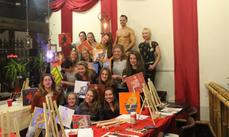 Op een gezellige locatie geven wij een hillarisch workshop naakt model schilderen, we beginnen met een stil leven en dan komt er opeens een naaktmodel die jullie leren te tekenen /schilderen.